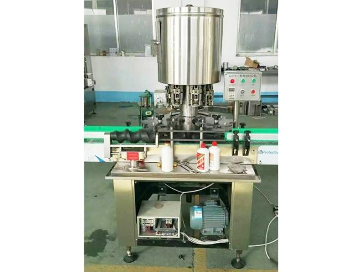 刚性容器封口机大部分的盖子是铝制的,而且事先没有螺纹。铝盖采用滚压成型,采用全自动封口机制作与瓶口螺纹形状一样的螺纹,密封容器。当盖子打开时,会沿着裙板周围的凹痕脱落,无法回收,故又称“防盗罩”。本机主要用于白酒、饮料的封口包装。包装从原始社会的保护或储存功能到后来的移动运输过程,并随着产品贸易的出现,逐渐具有早期推广的特点。